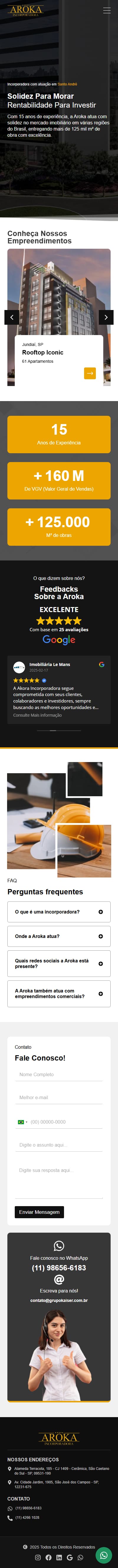 O site da Aroka foi desenvolvido em 2025 pela Lacerda PRO, utilizando WordPress e Elementor como principais ferramentas.