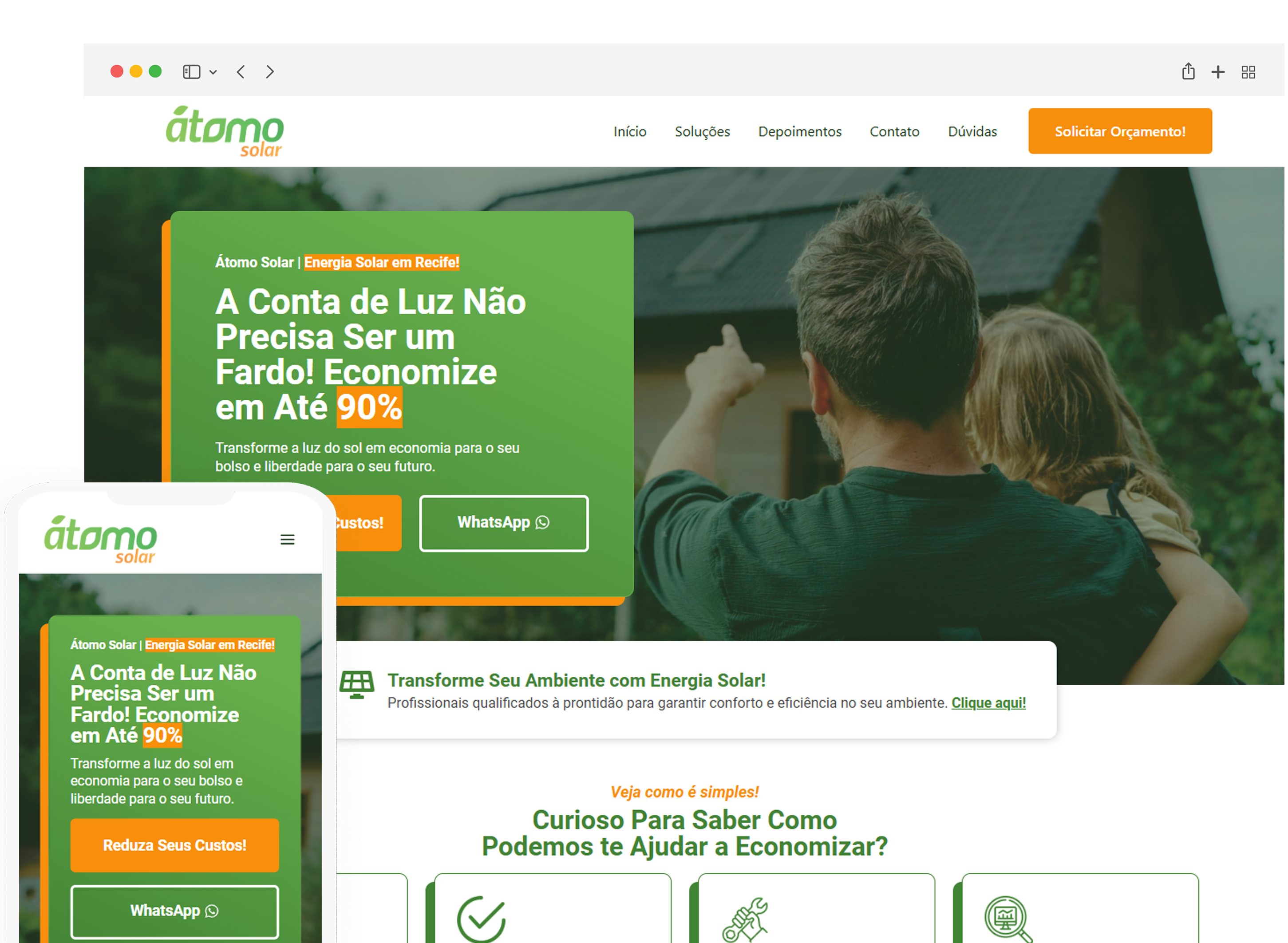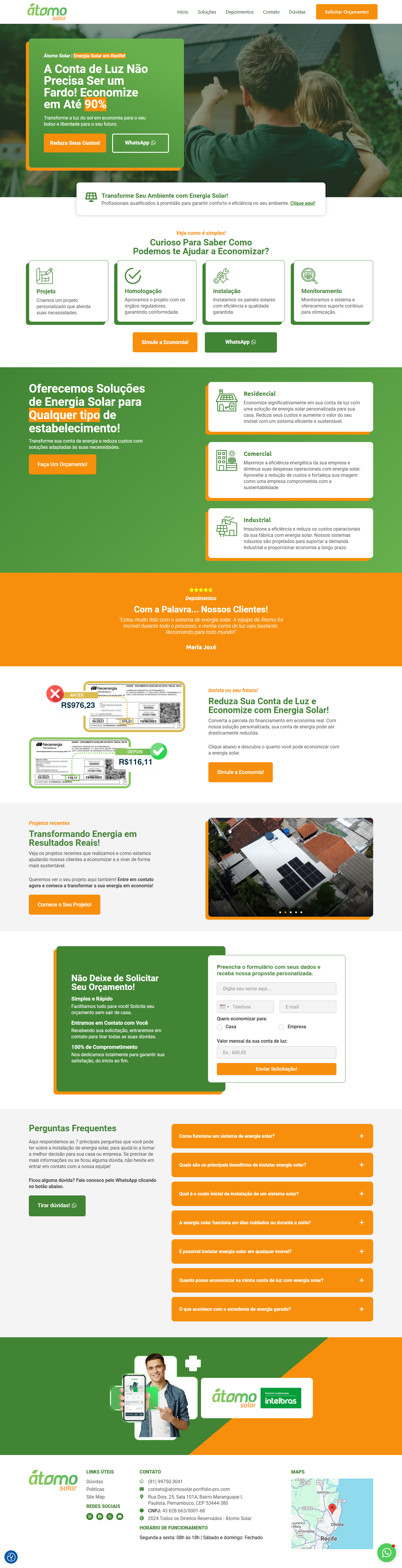 Em 2024, a Lacerda PRO desenvolveu o site One Page da Átomo Solar, uma empresa de energia solar localizada em Recife.