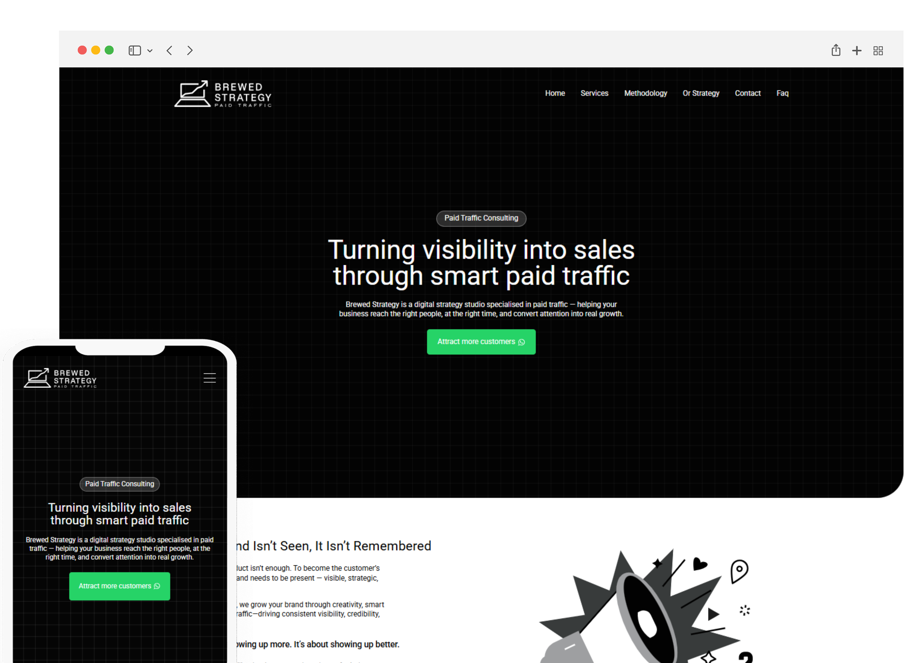 Brewed Strategy é uma assessoria de tráfego pago com atuação em Londres, baseada em uma metodologia clara e orientada a resultados: atrair, qualificar e vender, utilizando estratégias de tráfego pago, mensagens persuasivas e abordagem comercial no momento ideal.