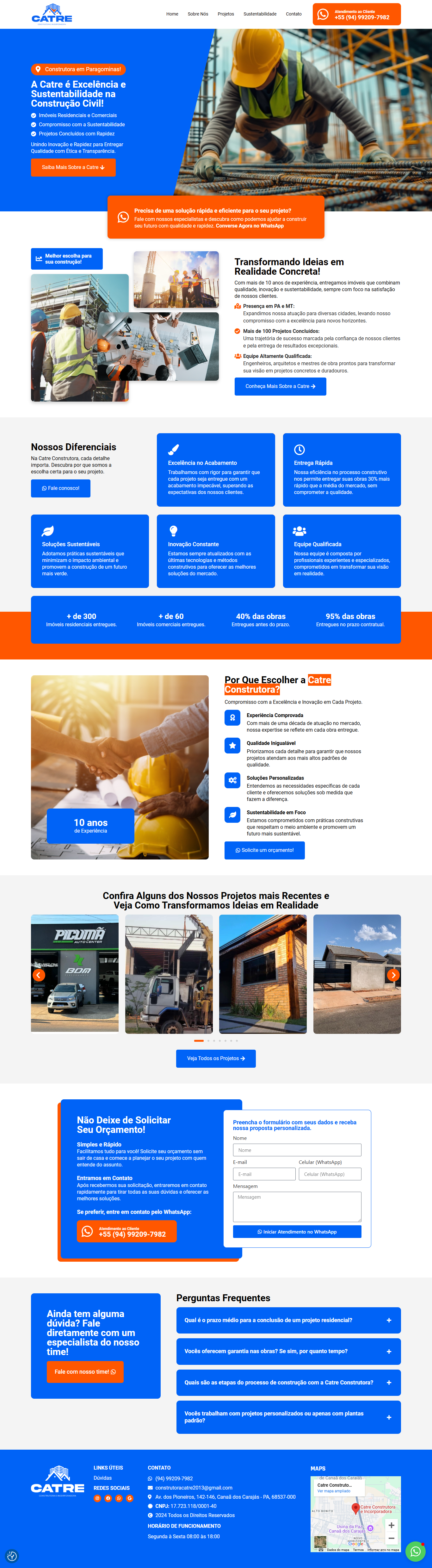 Em 2024, a Lacerda PRO desenvolveu o site institucional da Catre Construtora, presente em PA e MT, com sede em Paragominas.