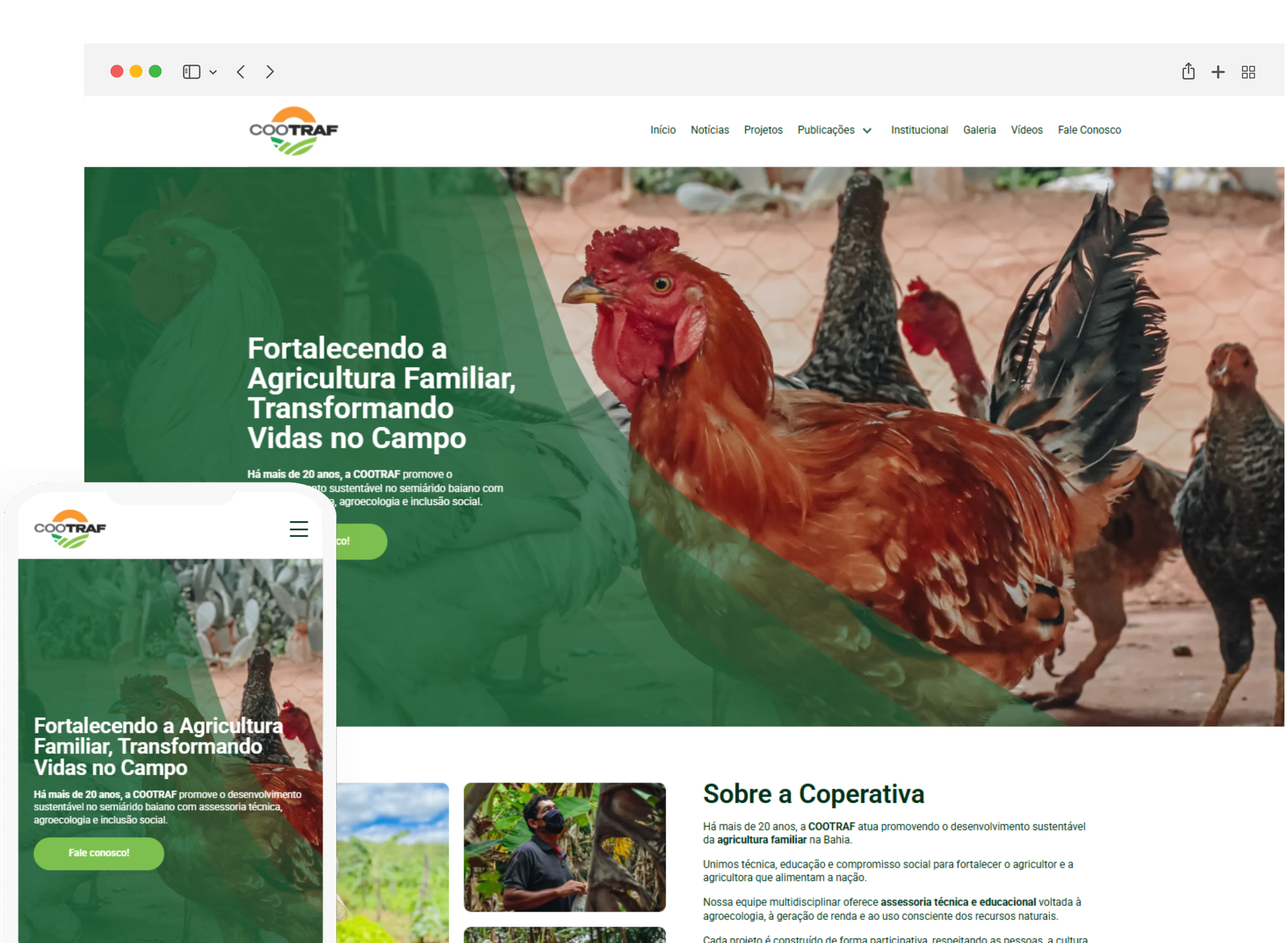 O site da Cooperativa Cootraf foi desenvolvido em 2025 pela Growth Sites, utilizando principalmente WordPress e Elementor.