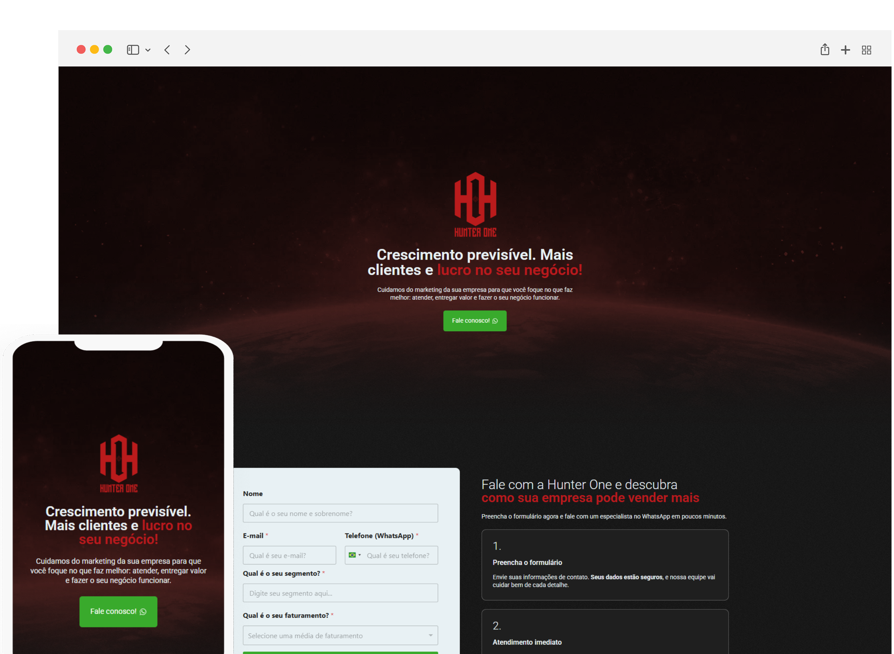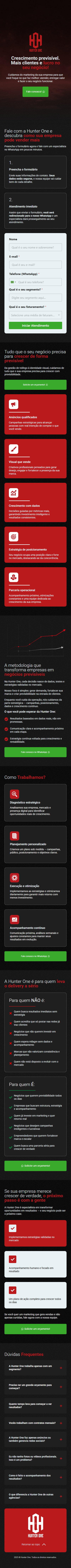 O site da Hunter One foi desenvolvido em 2025 pela Growth Sites, utilizando WordPress e Elementor como principais tecnologias.
