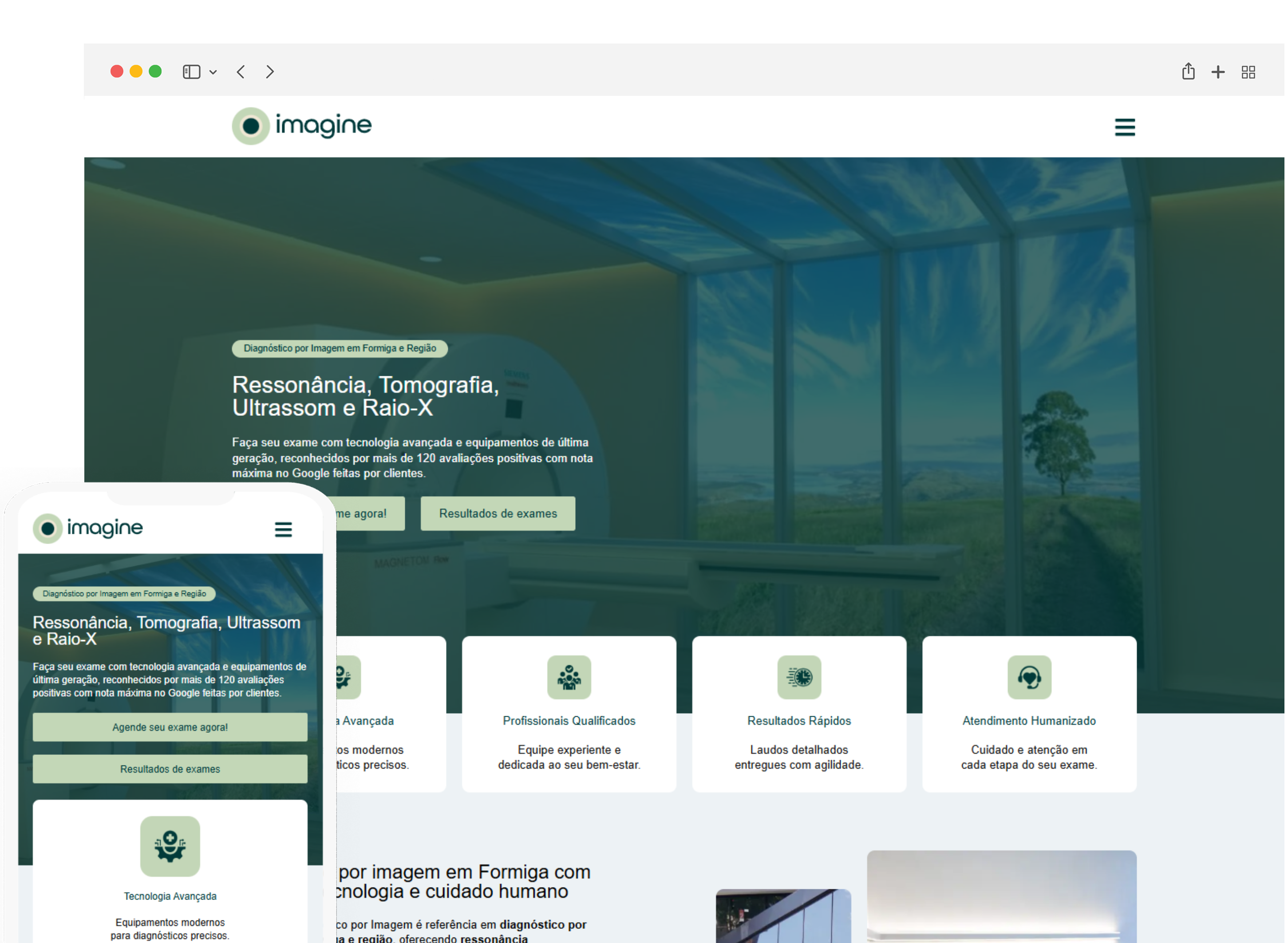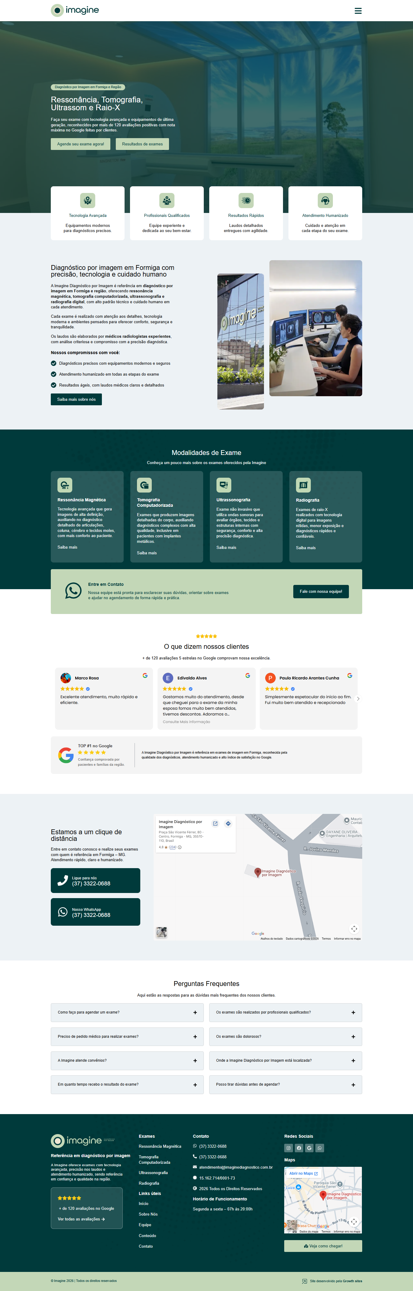 O site da Imagine Diagnóstico foi desenvolvido em 2026 pela Growth Sites, utilizando principalmente WordPress e Elementor.