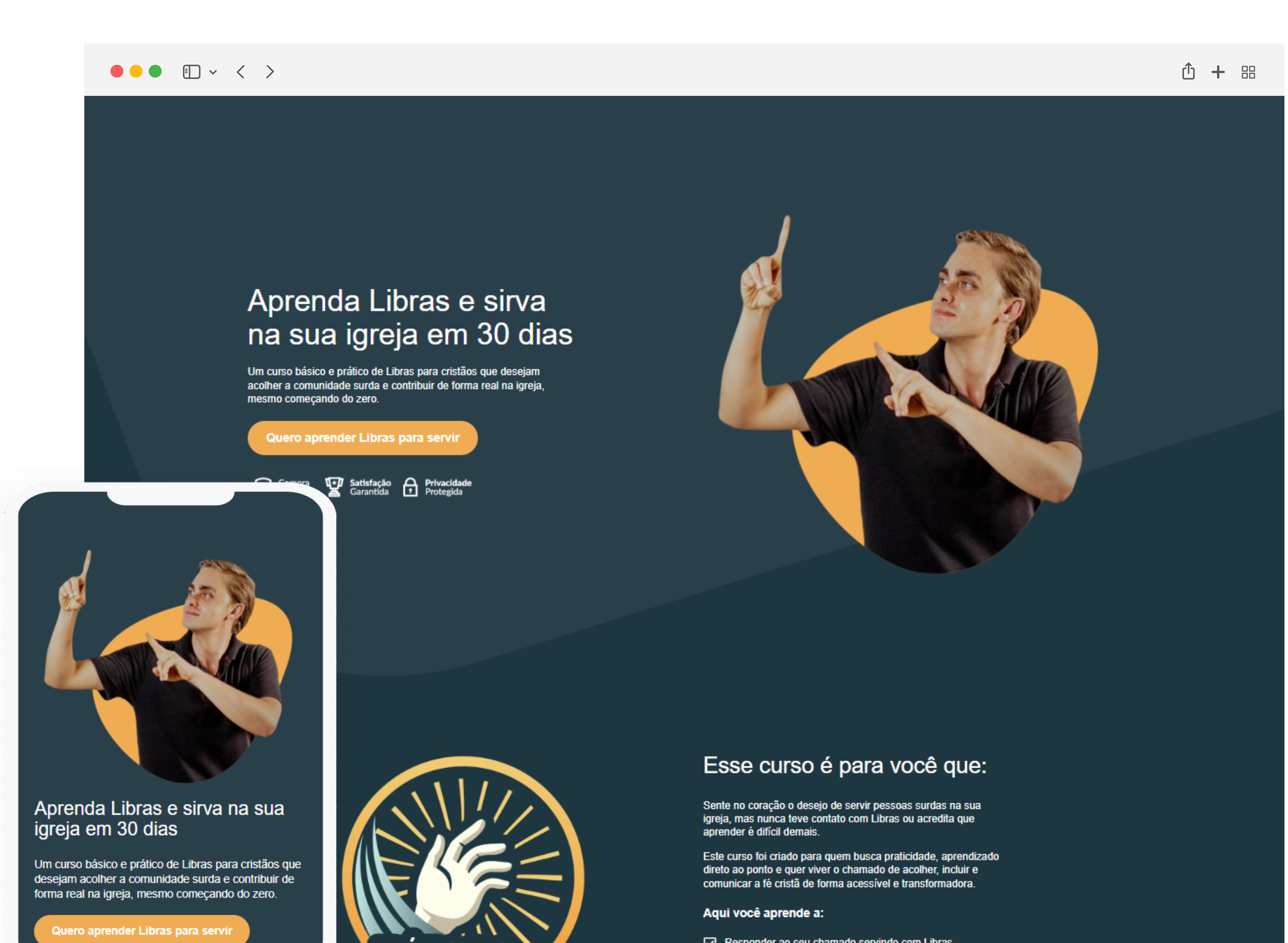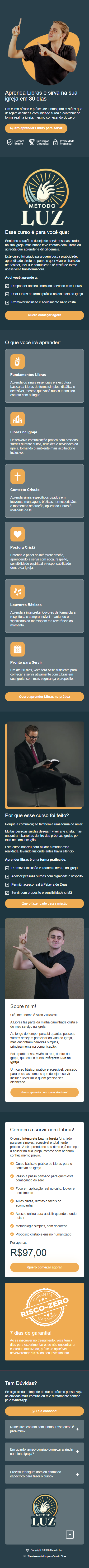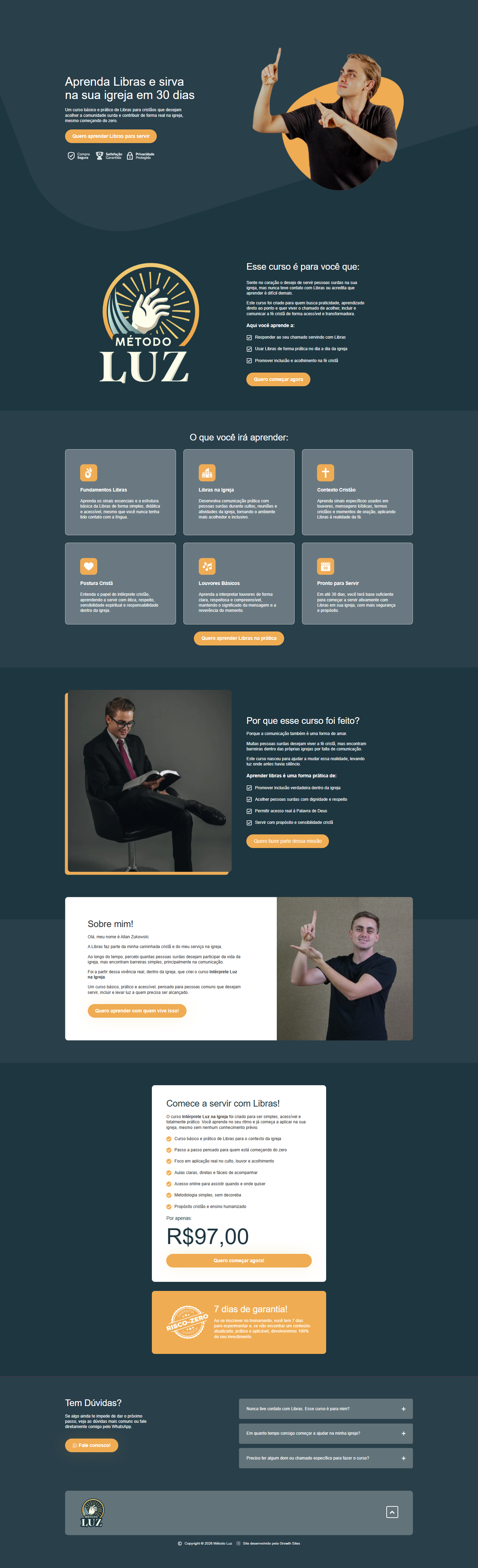 O projeto consiste em uma Página de Vendas (Landing Page) criada para apresentar o curso Intérprete Luz na Igreja, que ensina Libras de forma prática para cristãos que desejam incluir e acolher a comunidade surda em suas igrejas em até 30 dias.