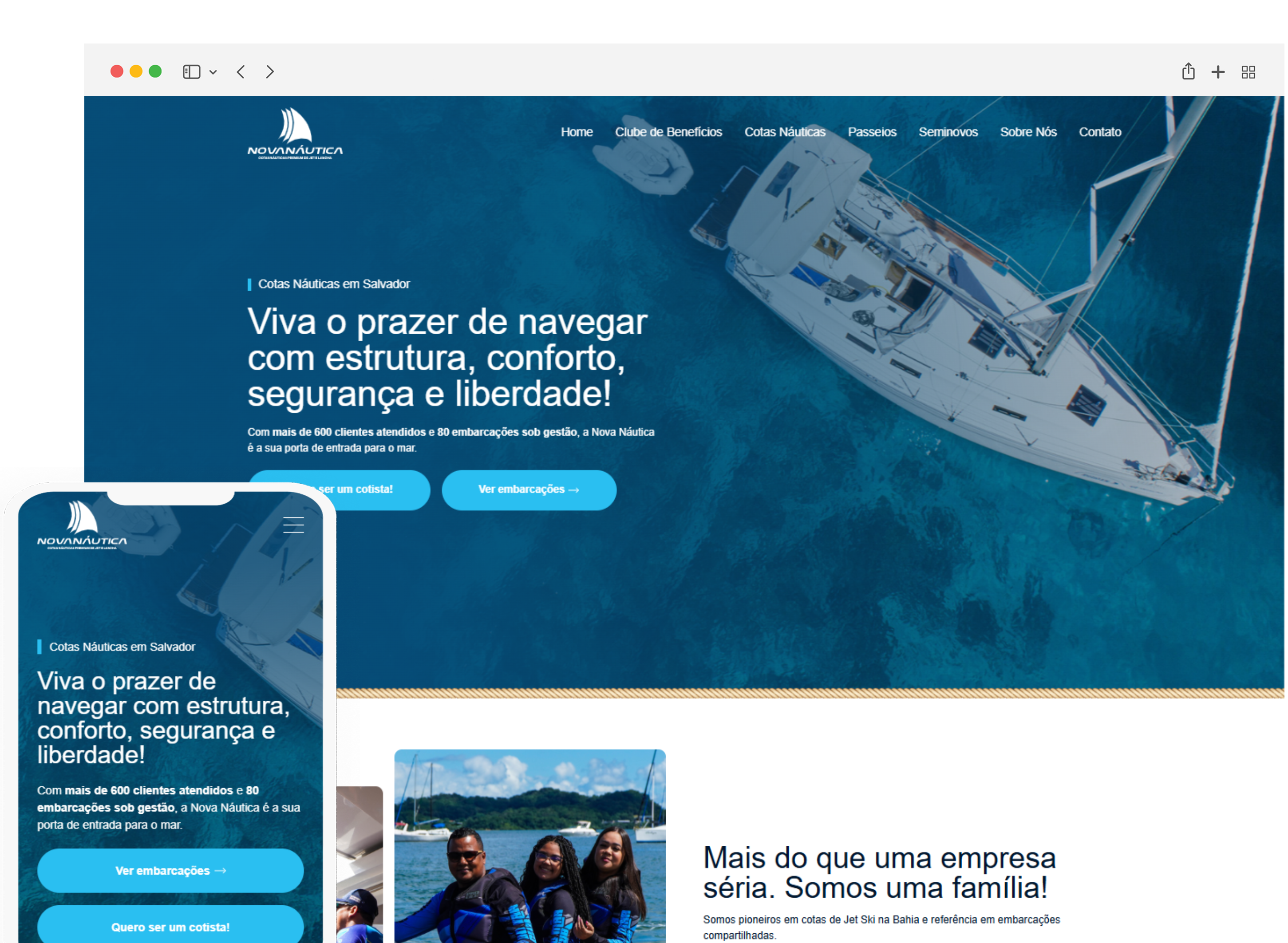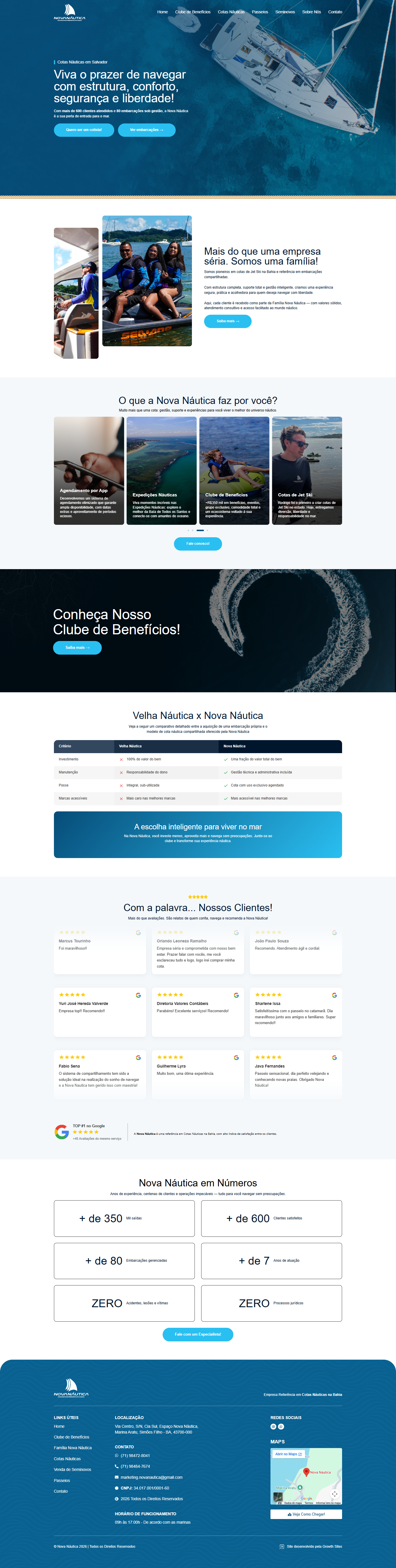 O site da Nova Náutica foi desenvolvido em 2025 pela Growth Sites, utilizando principalmente WordPress e Elementor.