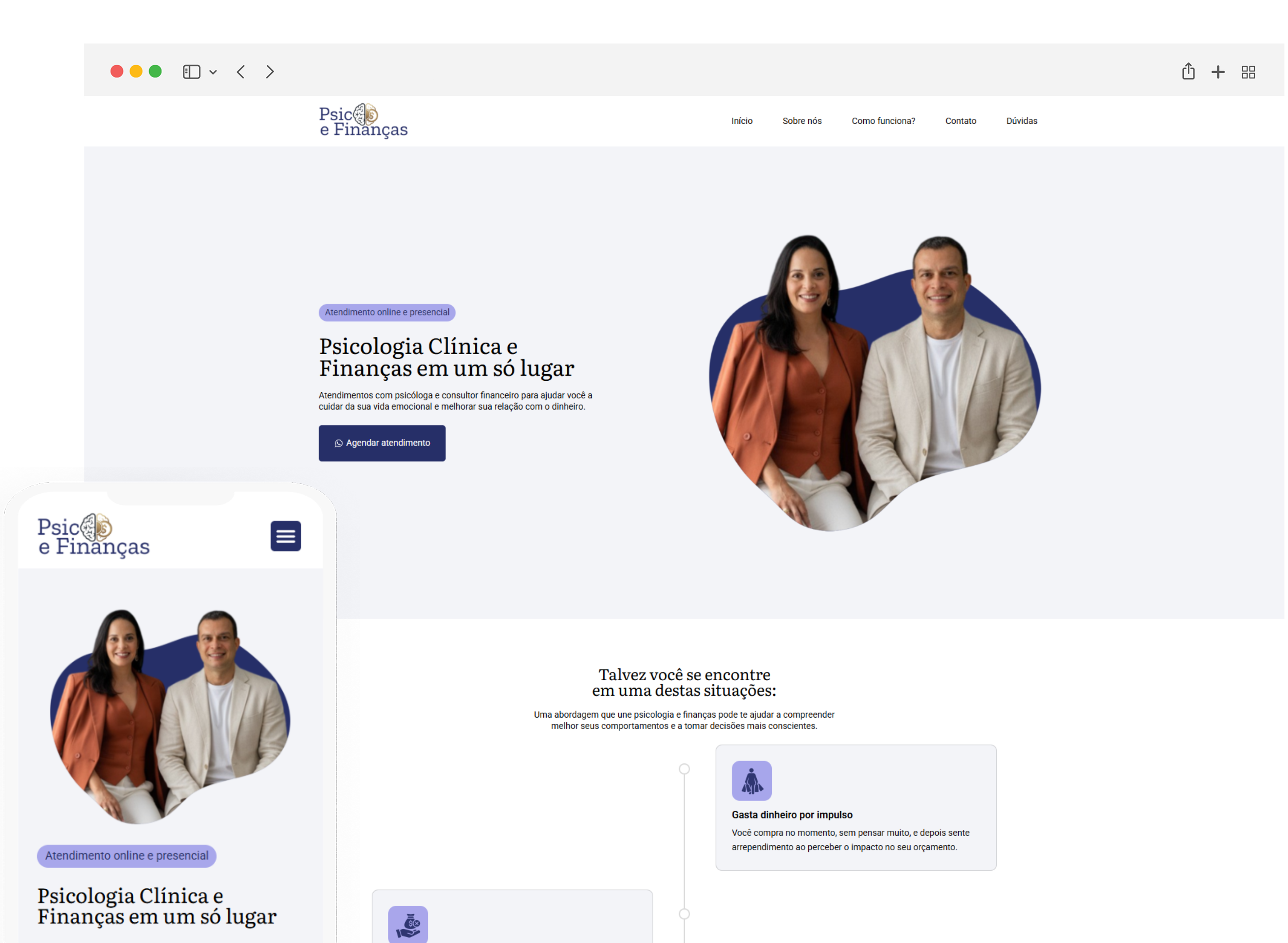 O site da Psico e Finanças foi desenvolvido em 2026 pela Growth Sites como um projeto One Page.